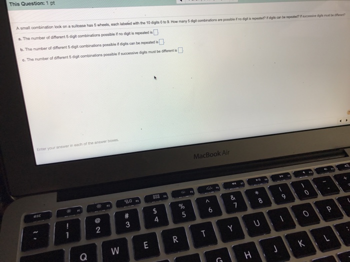How many 3 digit numbers are there in total? How many 3 digit numbers have 2 of the same digits? How many 3 digit positive numbers are there? How many combinations are possible with 3 numbers? How many 3 letter palindromes are there? How many combinations are there with 3 letters and 3 numbers? How to find ratio of 3 numbers? This equals 1000, which is the total number of different possible codes. Mar 08, 2021 · what are all the combinations for a 3 number lock? Jun 05, 2021 · how many 3 digit combinations are there? Jul 15, 2021 · introduction in any pick 3 game, there are 3 digit positions, with each position containing a digit from 0 to 9. The total number of arrangements of three letters followed by three digits is then the product of the number of options available at each step and is then 26⋅26⋅26⋅10⋅10⋅10=263⋅103. If the safe is a dial, and you were able to find the serial number, the locksmith will most likely will be able to retrieve the original combination to the safe.